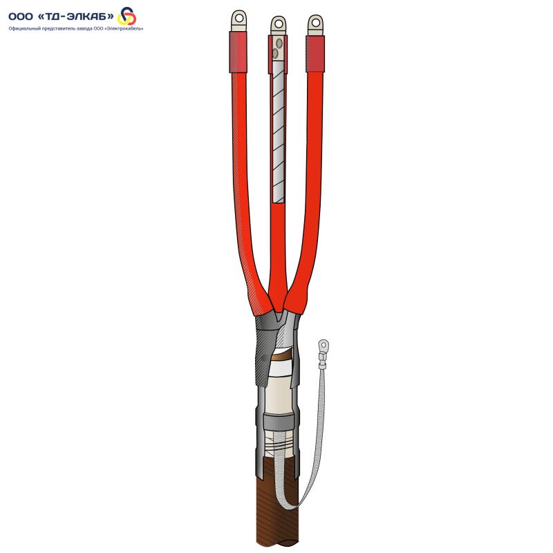 Муфта термоусаживаемая концевая внутренней установки для кабеля с бумажной изоляцией на напряжение до 10 кВ включительно с непаянным заземлением 3КВТпН-10-35…50 (с наконечниками)