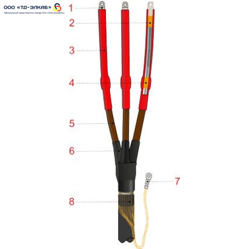 Муфта термоусаживаемая концевая внутренней установки для трехжильного кабеля с пластмассовой изоляцией из сшитого полиэтилена с ПРОВОЛОЧНЫМ экраном, БЕЗ БРОНИ, на напряжение до 10 кВ включительно 3ПКВТпН-10-70…120-КПЭ (с наконечниками)