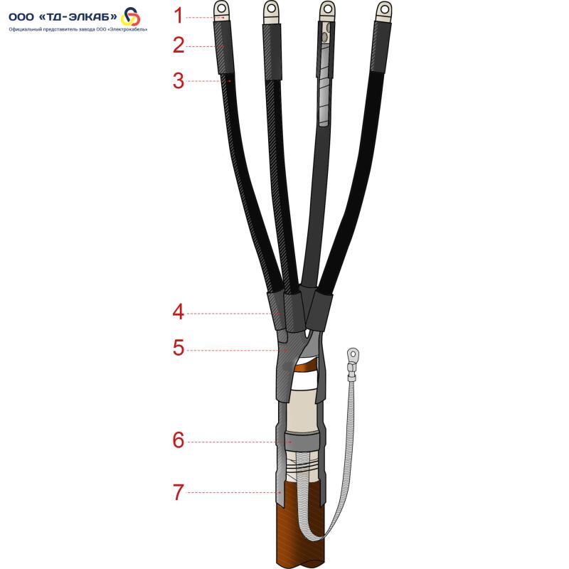 Муфта термоусаживаемая концевая внутренней-наружной установки для кабеля с бумажной изоляцией на напряжение до 1 кВ включительно, с непаянным заземлением 4КВНТпН-1-25…50 (с наконечниками)