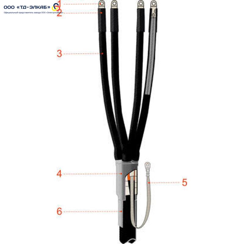 Муфта термоусаживаемая концевая внутренней-наружной установки для кабеля с пластмассовой изоляцией с броней на напряжение до 1 кВ включительно,с жильными трубками не распространяющими горение 4ПКВНТпН-Б-1-16…25 (с наконечниками)