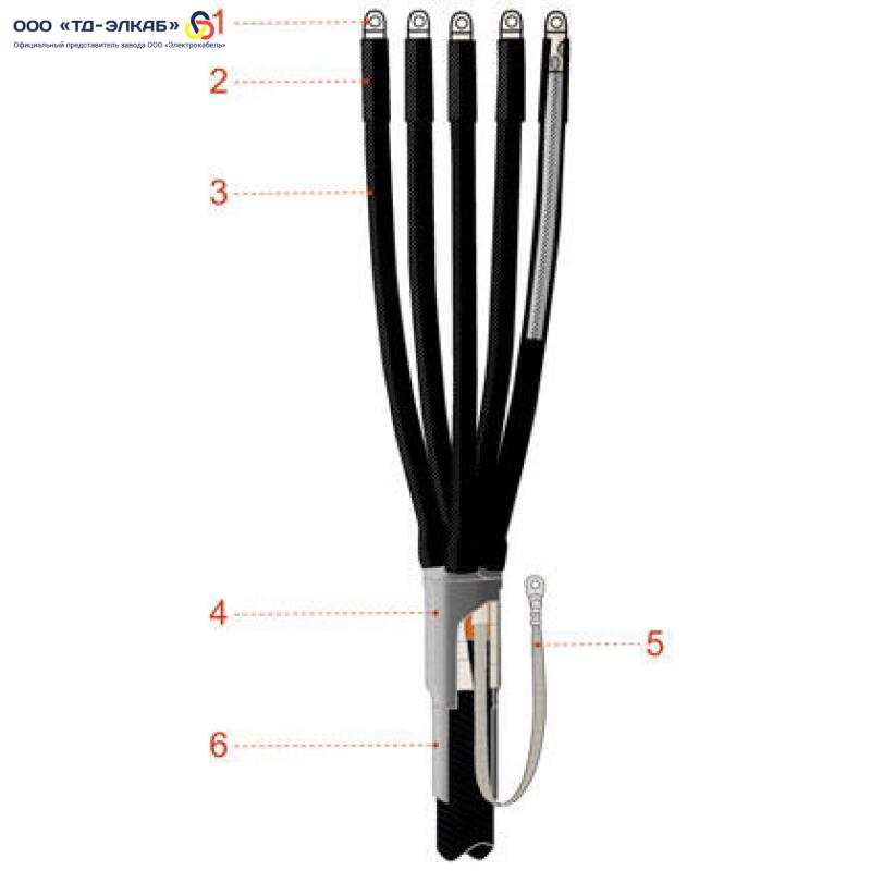Муфта термоусаживаемая концевая внутренней-наружной установки для кабеля с пластмассовой изоляцией без брони на напряжение до 1 кВ включительно 5ПКВНТпН-1-150…240 (с наконечниками)