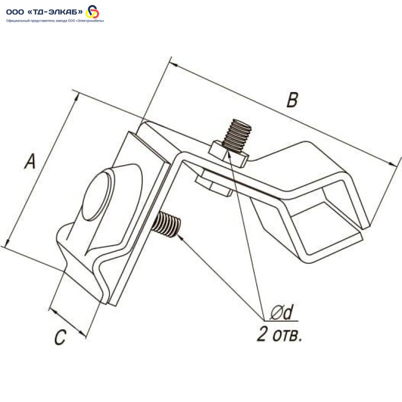 Само изделие прочное, причем держатель состоит из двух двойных пластин, размещенных друг к другу под изменяемым углом, что и позволяет производить крепление на фальцах. Внешние пластины на обеих частях держателя имеют специальные пазы, через которые протягивают токоотводящий проводник. Фиксация проводника осуществляется путем стяжки болтовым соединением внешней и внутренней пластин держателя. Благодаря удачной конструкции можно надежно зафиксировать токоотводящий проводник диаметром до 12 мм.