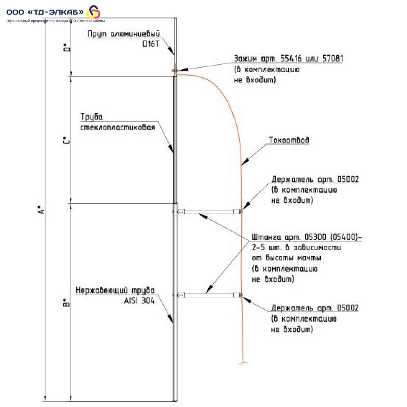 Дополнительно комплектуется (не входит в комплект поставки): зажим 57081 (55416); штанги (05300, 05400); держатель 05002. Количество дополнительных элементов зависит от высоты мачт.